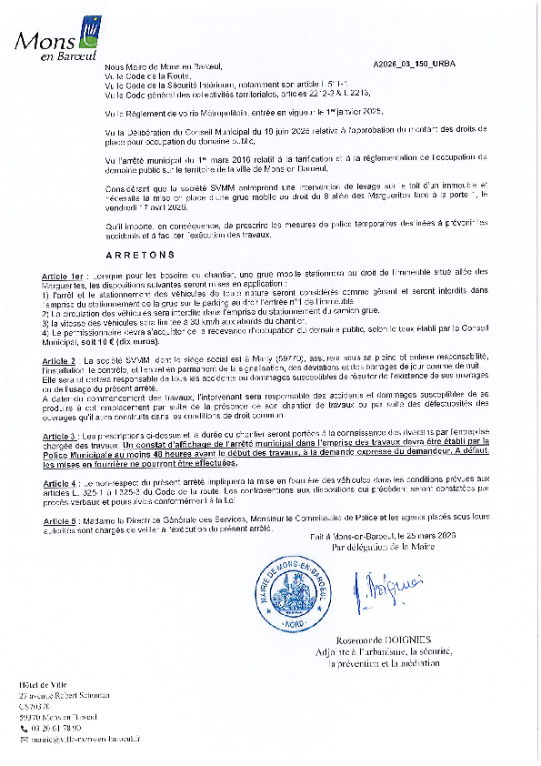 A2026-03-134 Restriction de stationnement 402 rue du Général de Gaulle