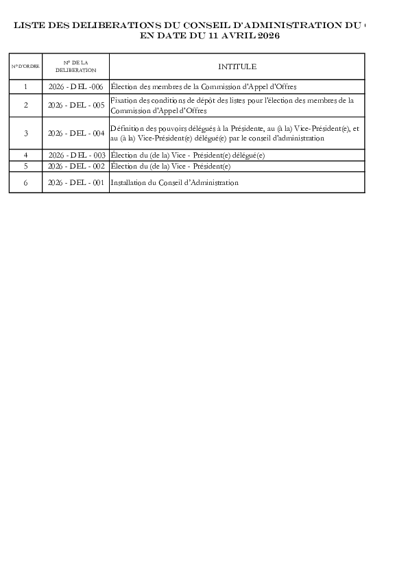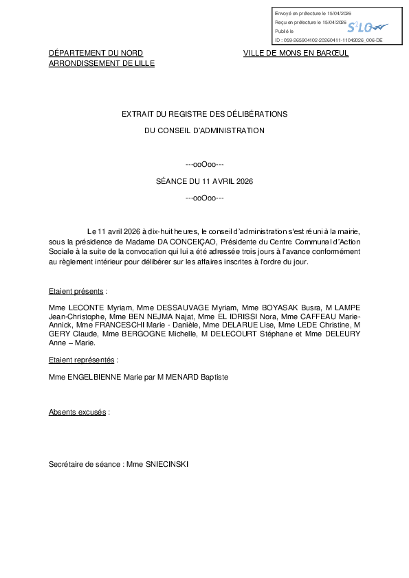 Ca du CCAS 11 avril 2026 - Liste des délibérations